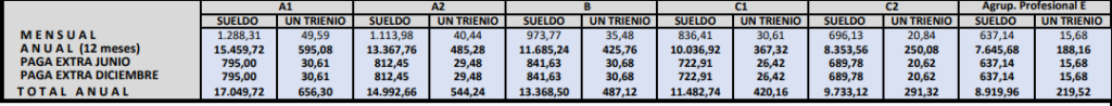 En detalle, el salario base para los funcionarios del grupo C, queda estructurado de la siguiente manera: