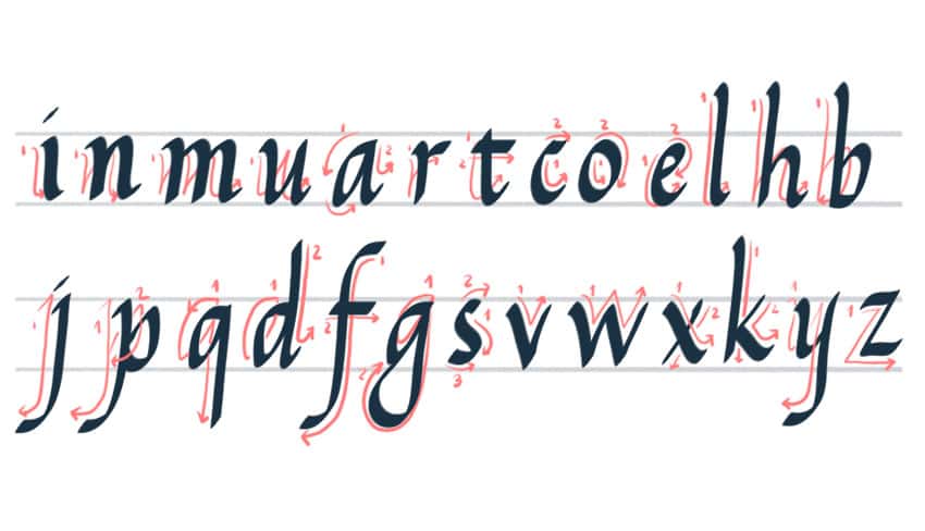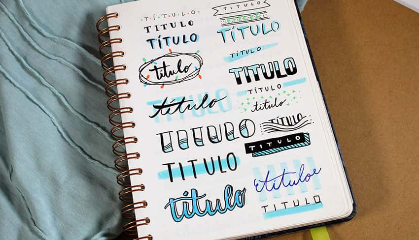 Lo ideal es usar un tipo de letra llamativo para el título. Si te gusta el lettering o la caligrafía esta es tu oportunidad para ponerlos en práctica. Te dejamos un ejemplo de una tipografía itálica hecha con plumilla. Esta letra es bastante sencilla, aunque tienes de practicar un poco para poder dominarla, además de utilizar una plumilla o un pilot parallel pen, que son más cómodos. Para que puedas probar en casa sigue la plantilla con la forma de las letras.